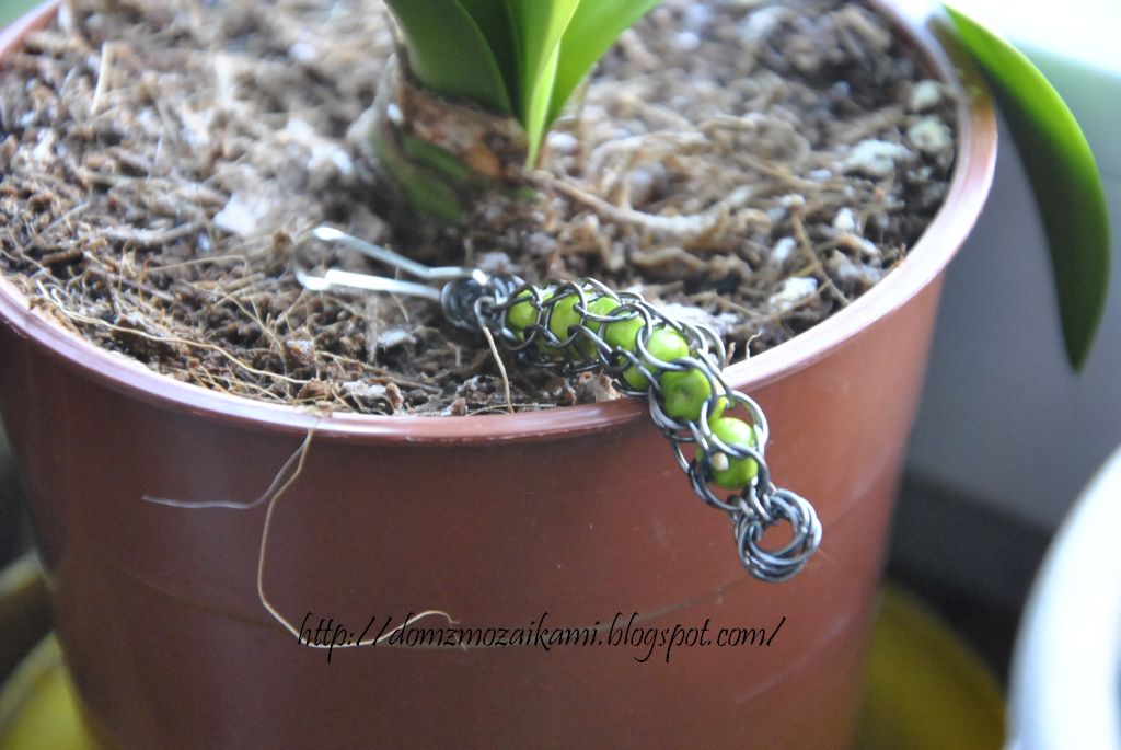 Breloczek z wykorzystaniem splotu – pokazanego na Blogu Agaty – INVERTED ROUND oraz drewnianych koralików. Trójgraniastość z obu stron – okiełzana Mobiuskami :o) Wykorzystałam ogniwka koloru czarnego o przekroju 6 mm. Koraliki drewniane typu – oponka (ok.6 x 4 mm), mobiuski wykonane ogniwkami o przekroju 6 mm. Długość breloka bez zapięcia – 6 cm.